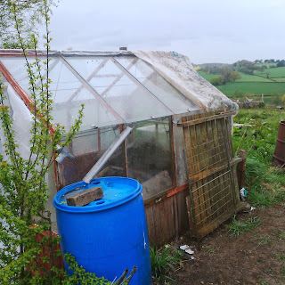 So the plastic's a bit thinner than I thought and they've given out heavy winds tomorrow, but it has so far lasted two days. I'm particularly chuffed with the door which was fashioned from an old pasting table chopped down to size.